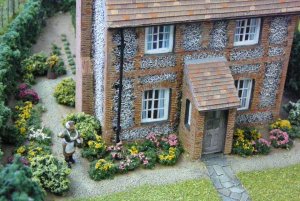 'Rowlands Castle' is a popular exhibition layout set in 1944 with a great deal of military activity taking place. Tucked away amidst all the preparations for D-Day a couple of our figures keep an extremely well tended garden while others are on the platform. | ||